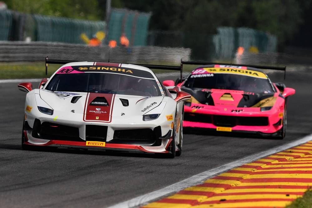 Francorchamps, 13 May 2018 – Nicklas Nielsen, Fabienne Wohlwend, James Weiland and Ingvar Mattsson won the Sunday races of the Ferrari Challenge Europe at Spa-Francorchamps in Belgium, on a day that was marked by rain and fog.