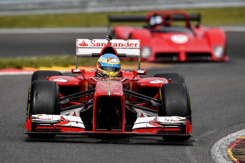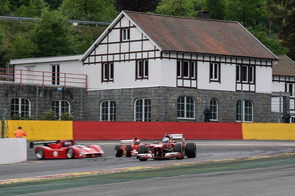F1 Clienti. Anyone arriving early was treated to the sight of the Formula 1 single-seaters cornering the spectacular Eau Rouge and Raidillon turns, with their rain tyres spraying out a classic water trail, while still allowing the drivers to top 300 km/h on the Kemmel straight and on the final turns of one of the world’s most beautiful tracks. The 2013 F138 shared the track with two F2008s and one F2007, two F2001s and one F2002. Then there was also an F333 SP, the barchetta that still holds a place in the hearts of endurance racing fans. Indeed, this car triumphed at the 24 Hours of Daytona, the Petit Le Mans and the 12 Hours of Sebring.