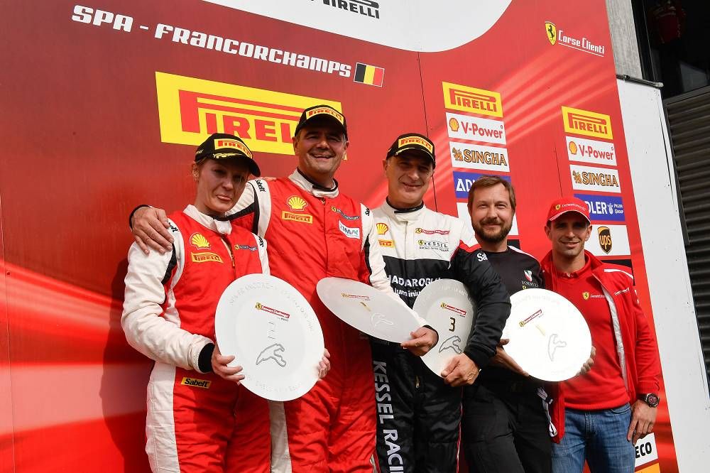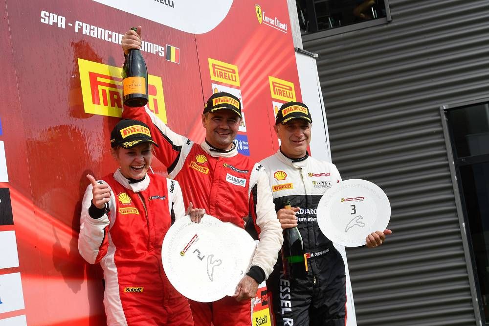 Ferrari Challenge. The Ferrari Challenge offered two more races, although the second was marred by the fog that descended on the Ardennes track in the mid-afternoon. The first, the Trofeo Pirelli, was chaotic with a second start after an accident at La Source. The winners were championship leader Nicklas Nielsen (Formula Racing) and Fabienne Wohlwend (Octane 126), the fastest woman in Ferrari Challenge history, who had previously won at Imola last year in the Coppa Shell. The race officials spent 20 minutes trying to start the Coppa Shell race but the conditions were never right to withdraw the Safety Car from in front of the group. So, the final standings were just like qualifying with James Weiland winning the Coppa Shell and Ingvar Mattsson the Coppa Shell Am.