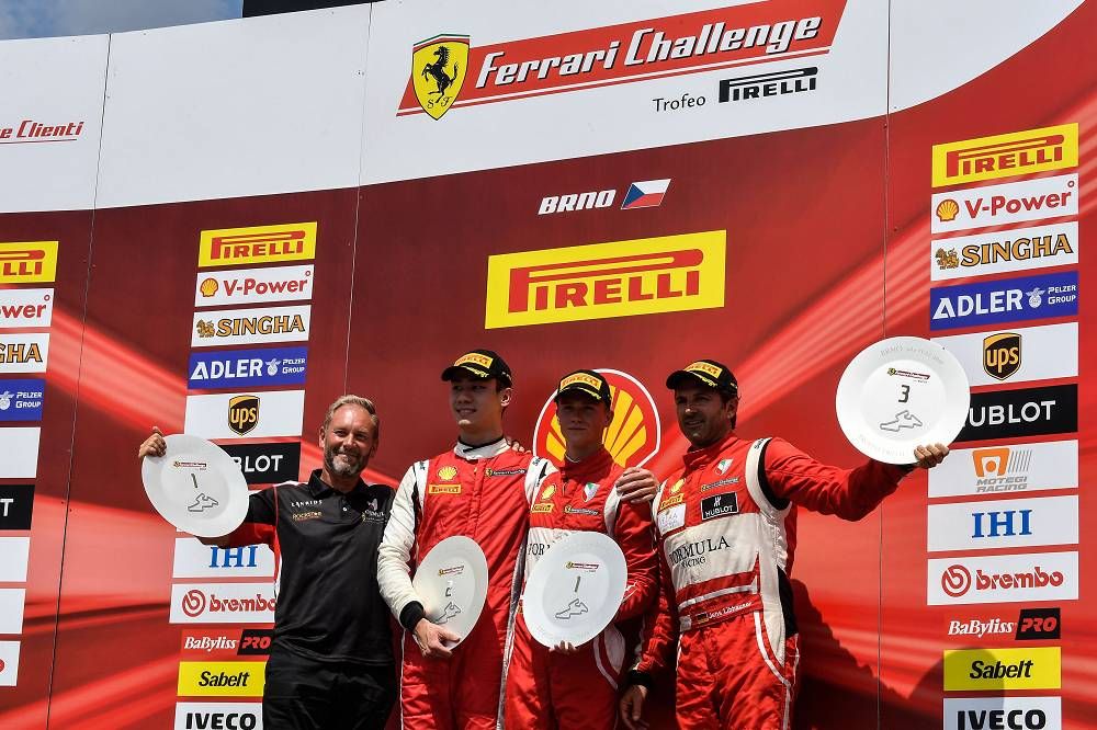 Brno, 21 July 2018 – Ferrari 488 Challenge drivers Nicklas Nielsen, Chris Froggatt, Christophe Hurni and Alexander Nussbaumer won the first races of the Brno round of the Ferrari Challenge Europe 2018.