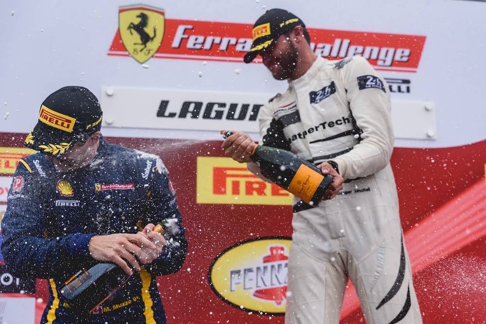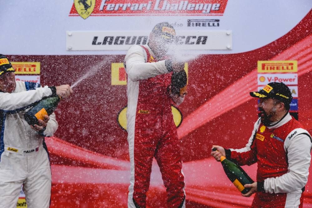 Coppa Shell. Thomas Tippl (Ferrari of Beverly Hills) took the first race to get up to speed in his first season of Ferrari Challenge competition, but he has not looked back since, with a string of three consecutive wins going into Laguna Seca. Michael Fassbender (Ferrari North America) has shown great strides in his consistency and speed in season two, taking a win at Daytona and two runner up finishes at COTA. Mark Fuller (Ferrari of Westlake) has been equally consistent, taking two podiums at COTA as well.
