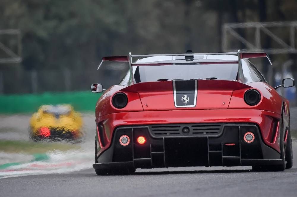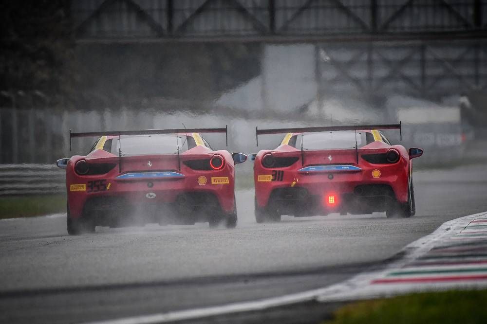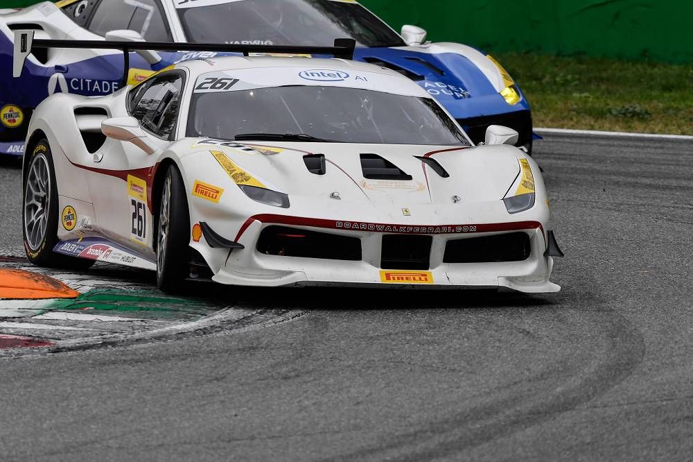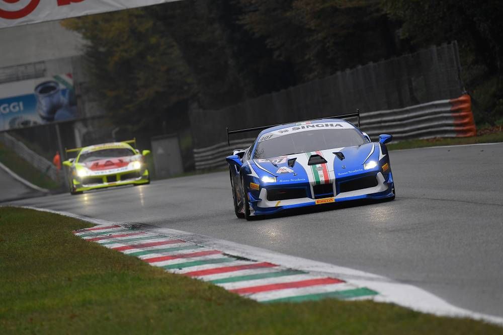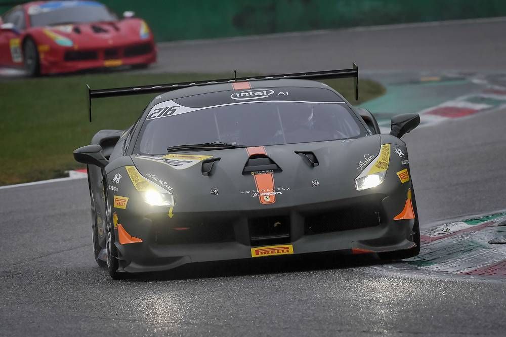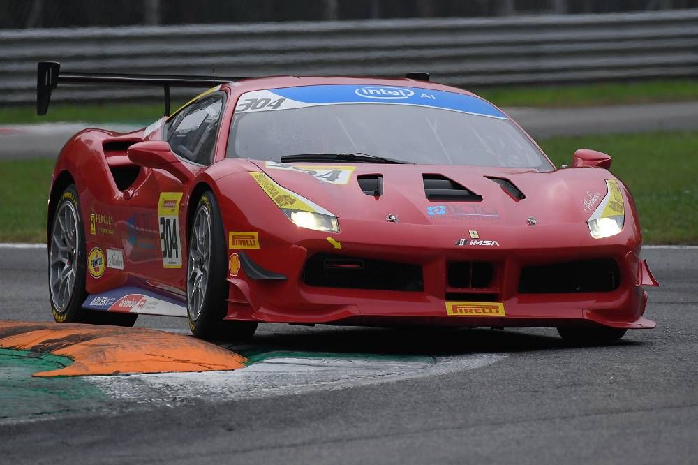 Monza, 2 November 2018 – Cooper MacNeil (Scuderia Corsa–Ferrari Beverly Hills) and John Megrue (Ferrari Long Island) confirmed their status as champions of the North American series of Ferrari Challenge at Monza. Racing under grey skies and starting on a dry track, Race-1 soon took a dramatic turn as light sprinkles and then a full on downpour wet the circuit. In the drama, some drivers elected to pit, gambling the time lost would be made up as the rain continued. Others elected to stick it out – betting on their own ability would be worth more than the time lost. The result was a thrilling and chaotic start to the Finali Mondiali.