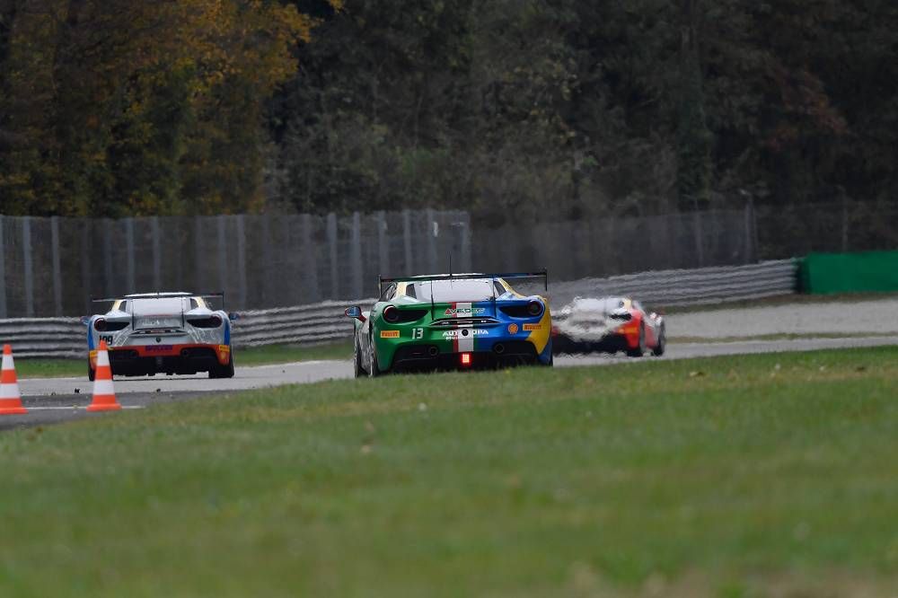 Monza, 3 November 2018 – David Fumanelli (Rossocorsa) survived a late charge from Nicklas Nielsen (Formula Racing) to win the final race of the European Series of Ferrari Challenge Trofeo Pirelli. While early showers left the track soaked for the start of the race, the sun finally showed itself in the second half of the race. Competitors made use of the extra grip to set faster and faster lap times, but to the detriment of their treaded Pirelli tires.