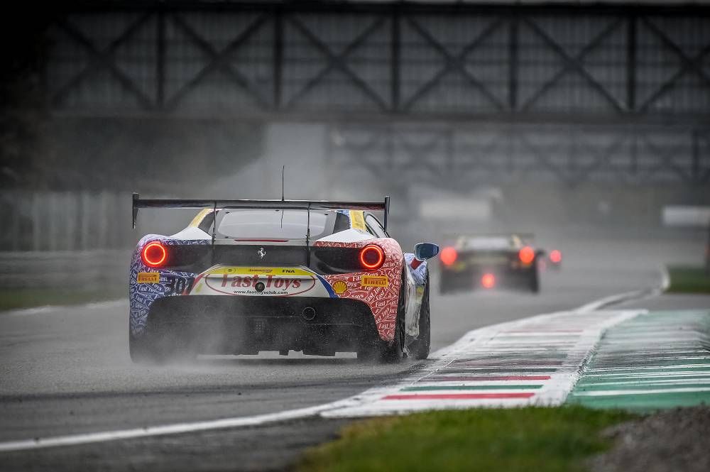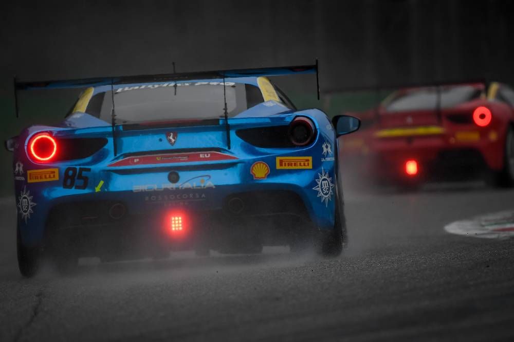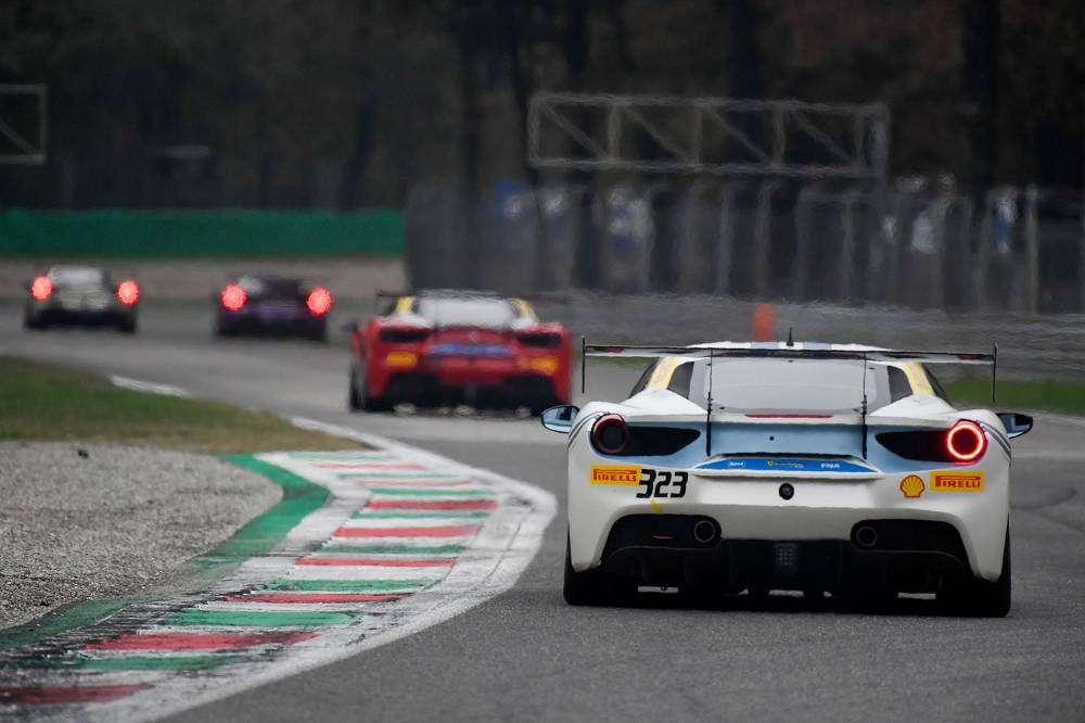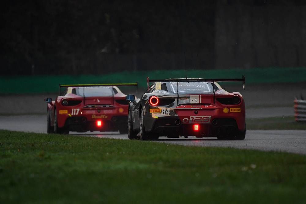 Monza, 2 November 2018 – The clouds broke to reveal a glorious sunset while the first day of racing action at the Finali Mondiali concluded with Race 1 of the European leg of the Ferrari Challenge Trofeo Pirelli. The largest grid of the weekend at 39 cars took to a track that started wet and remained wet for the entire 30 minute run-time.
