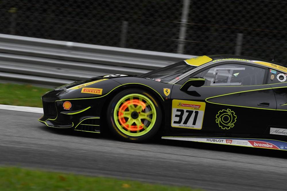 Trofeo Pirelli. Having started on pole, Cooper MacNeil started from pole and did not look back, maintaining a 1.5 second advantage over the well-qualified Thomas Tippl (Scuderia Corsa–Ferrari Beverly Hills). Despite some dramas further back at the first corner that eliminated Angie King (Scuderia Corsa-Ferrari of Beverly Hills) and Murray Rothlander (Ferrari of Vancouver), Cooper was able to establish a gap and control the race from the front. Cooper’s win, his ninth of the season, was enough to secure him the championship in North America. Further back, Benjamin Hites (The Collection) held second against a hard-charging Peter Ludwig (Wide World Ferrari). As the rain began to fall, Peter became ever more aggressive, saving some lurid moments in the treacherous conditions. Ultimately, however, he was able to pass Benjamin and as the rain intensified, Hites made the decision to pit for rain tires, loosing significant time in the process. That also promoted Chris Cagnazzi (Ferrari of Long Island) into third place. But as the conditions worsened, Chris was unable to hang on to the position, ultimately crashing in the Lesmo corners, ending the race early and promoting Jean-Claude Saada (Boardwalk Ferrari) to the podium.