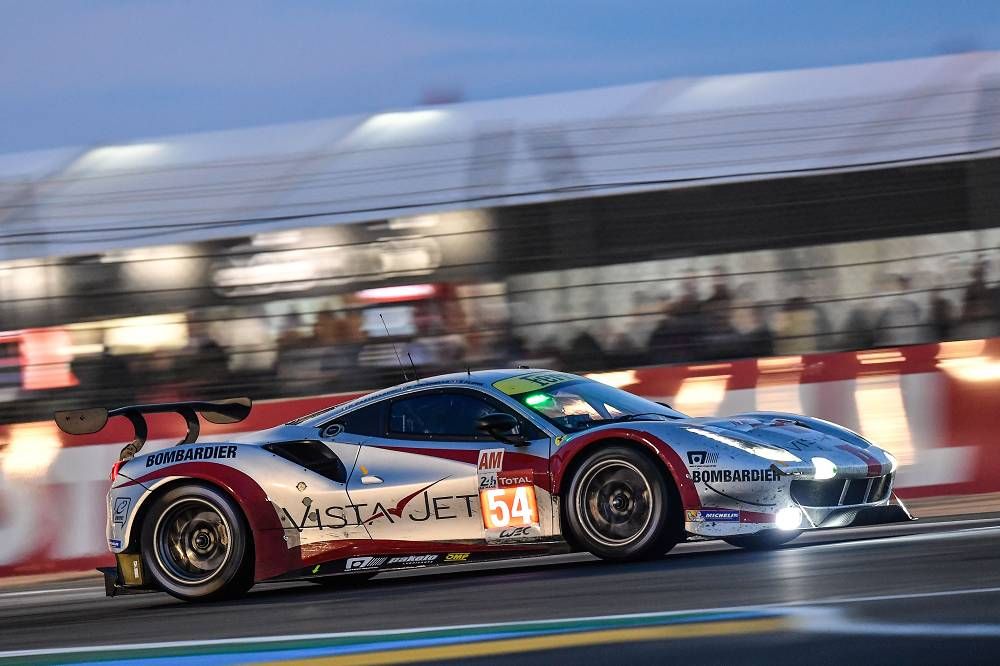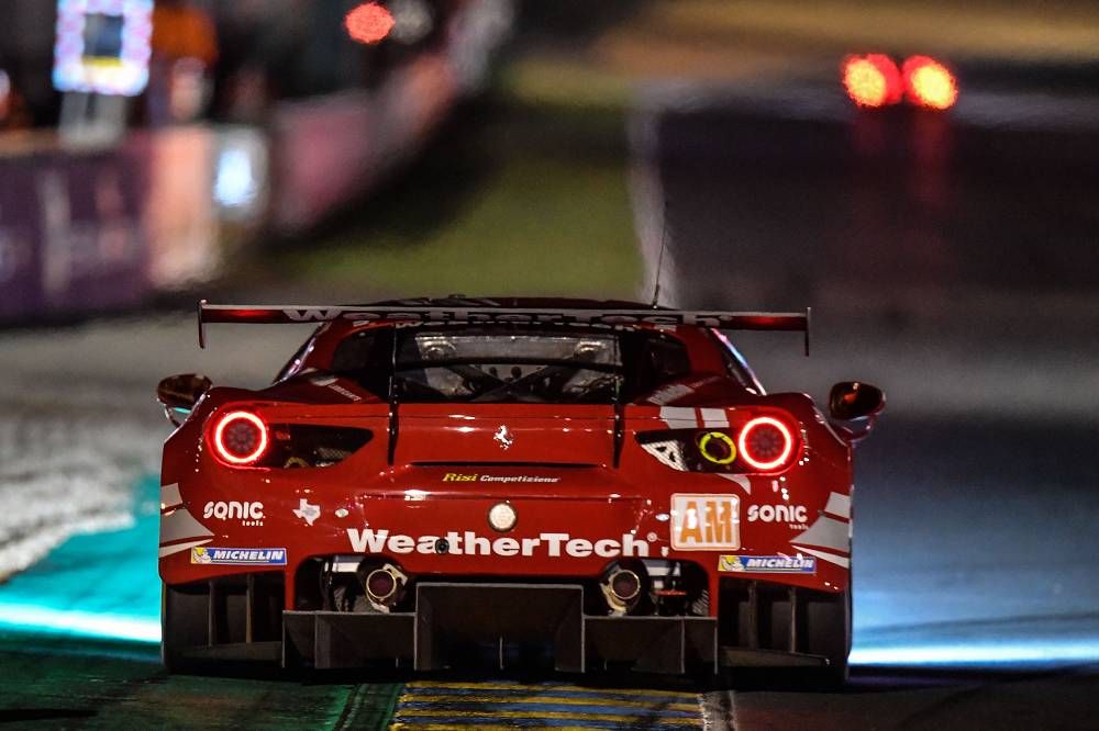 GTE-Am. The 488 GTEs of JMW Motorsport and Spirit of Race are continuing their excellent race in the GTE-Am class. Porsche no. 77 leads the field, while the Ferrari of Jeff Segal, Cooper MacNeil and Liam Griffin is in second. The 488 GTE of Keating Motorsport has climbed into fifth with Jeroen Bleekemolen overtaking Thomas Flohr in the twin car of Spirit of Race. Clearwater Racing’s entry is in eighth, while the 488 GTE of MR Racing lost a few laps to a technical problem.
