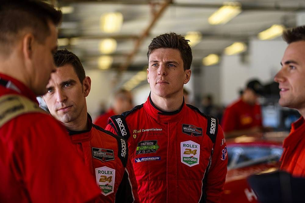 GTD. Right from the start, Daniel Serra in the Ferrari 488 GT3 of Spirit of Race dictated the pace. He improved lap by lap for a final time of 1:46:049, the fastest ever recorded in this category at the International Speedway. Serra will be joined by Paul Dalla Lana, Pedro Lamy and Mathias Lauda. Second place was taken by the sister car of Risi Competizione, driven in qualifying by Miguel Molina. He also improved lap by lap, stopping the clock at 1:46:502. Miguel, an official Maranello driver, will share the car with Matt Griffin and Mexicans Martin Fuentes, Santiago Creel and Ricardo Perez de Lara. The first of the two Scuderia Corsa Ferraris will set off in fifth. Alessandro Balzan recorded a time of 1:47:055. In the race, he will share the 488 GT3 with Gunnar Jeannette, Cooper MacNeil and Jeff Segal. The other Scuderia Corsa car, the no. 64 of Sam Bird, Townsend Bell, Bill Sweedler and Frankie Montecalvo enjoyed a less successful qualifying. Bird recorded a time of 1:47:839, for 14th place.