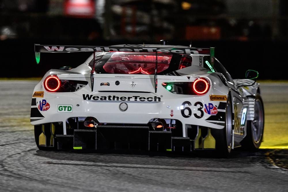 GTD. There was even more cause for regret in the GTD class, given that Ferrari had monopolised the front row in qualifying. Car no. 82 of Risi Competizione took command thanks to a fast Miguel Molina but the Houston team’s performance was compromised by a refueling problem in the first part of the race. The car returned to the pits, but a issue with the filler caused fuel to spurt out, which landed on hot parts of the car, ignited and ruined the rest of the race. Molina drove the car over the line after alternating with Matt Griffin, Martin Fuentes, Santiago Creel and Ricardo Perez de Lara. It finished in 17th. Car no. 63 of Scuderia Corsa was the star of the early stages of the race until technical trouble lost Balzan-MacNeil-Jeannette-Segal nine laps that they only partially made up. They ended in tenth. The crew of the 488 GT3 no. 51 of Spirit of Race was up among the leaders until 8 am, but was forced to retire after Paul Dalla Lana came off track and it was too damaged to continue. The best of Ferraris in the end was car no. 64 of Scuderia Corsa, the one that had struggled most in qualifying. Sam Bird, Frankie Montecalvo, Bill Sweedler and Townsend Bell fought back from 14th to fifth place again proving the car’s potential. Unfortunately though, this great potential remained untapped. The Cadillac of Joao Barbosa, Filipe Albuquerque and Christian Fittipaldi was overall winner.