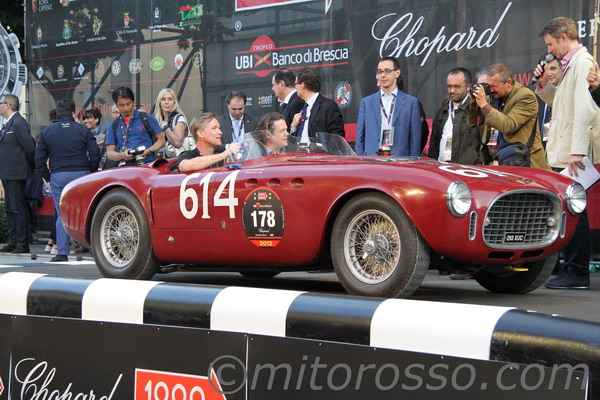 Ferrari too celebrates an important anniversary this year. Sixty years ago the House of the Rearing Horse (Ferrari’s symbol) took the Mille Miglia with Giovanni Bracco-Alfonso Rolfo Bignami in a Ferrari 250 S coupé Vignale. Racing in today’s race is a “grandchild”, a 1954 Ferrari 250 Mille Miglia.