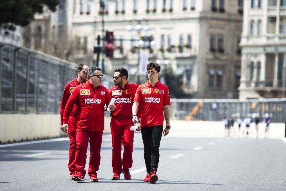 Baku, 25 April 2019 – Sebastian Vettel and Charles Leclerc spent their Thursday in Baku splitting their time between talking to media, having meetings with the engineers and walking the track. The two Scuderia Ferrari Mission Winnow drivers walked round the street circuit here in the Azerbaijan capital, before the first full planning meeting with engineers and technicians prior to the start of track action tomorrow.