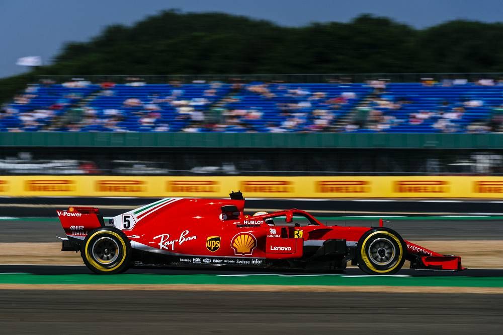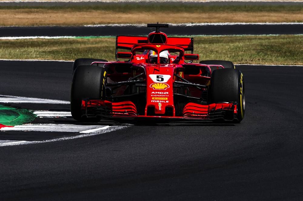 Sebastian Vettel was fastest in the second practice session at the English track, with a time of 1’27”552, while in the other SF71H, Kimi Raikkonen was fourth in 1’28”045.