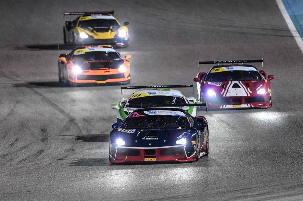 Sakhir, 17 Feb 2019 – Louis Prette, Emanuele Maria Tabacchi, Tani Hanna and Peter Christensen all won in the first round of the Ferrari Challenge Europe held at the Sakhir circuit.